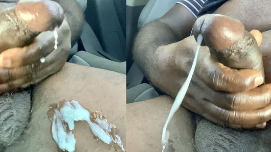 黒人男が黒いチンポをしごいて大量のザーメン(車内で黒人のパパの精液)をして、ダーティートークで喘ぎながらイク